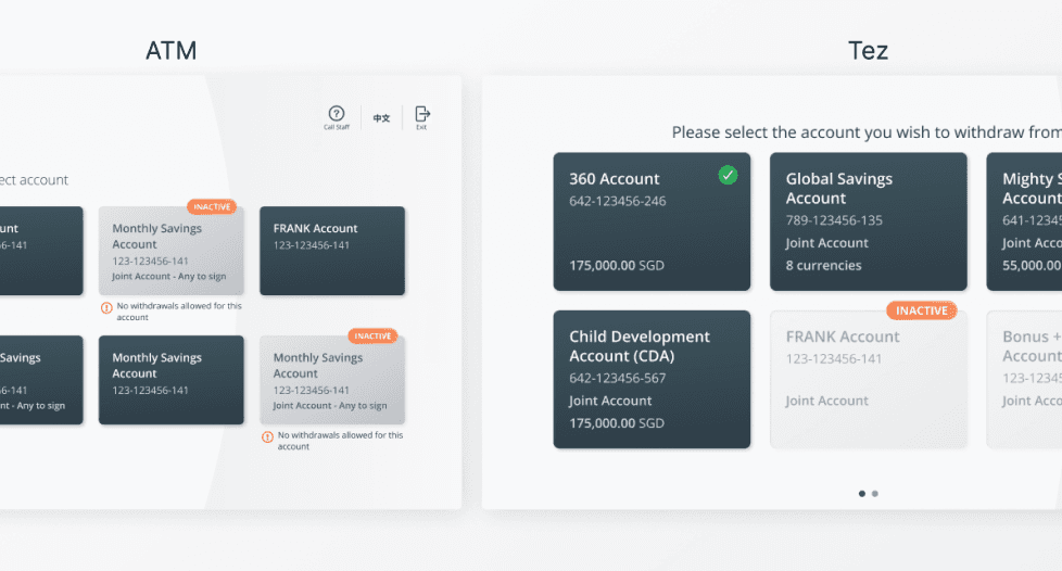 I synchronised with the Automated Teller Machines (ATM) design team so that customers would learn a similar design language for ease of learning and usage.