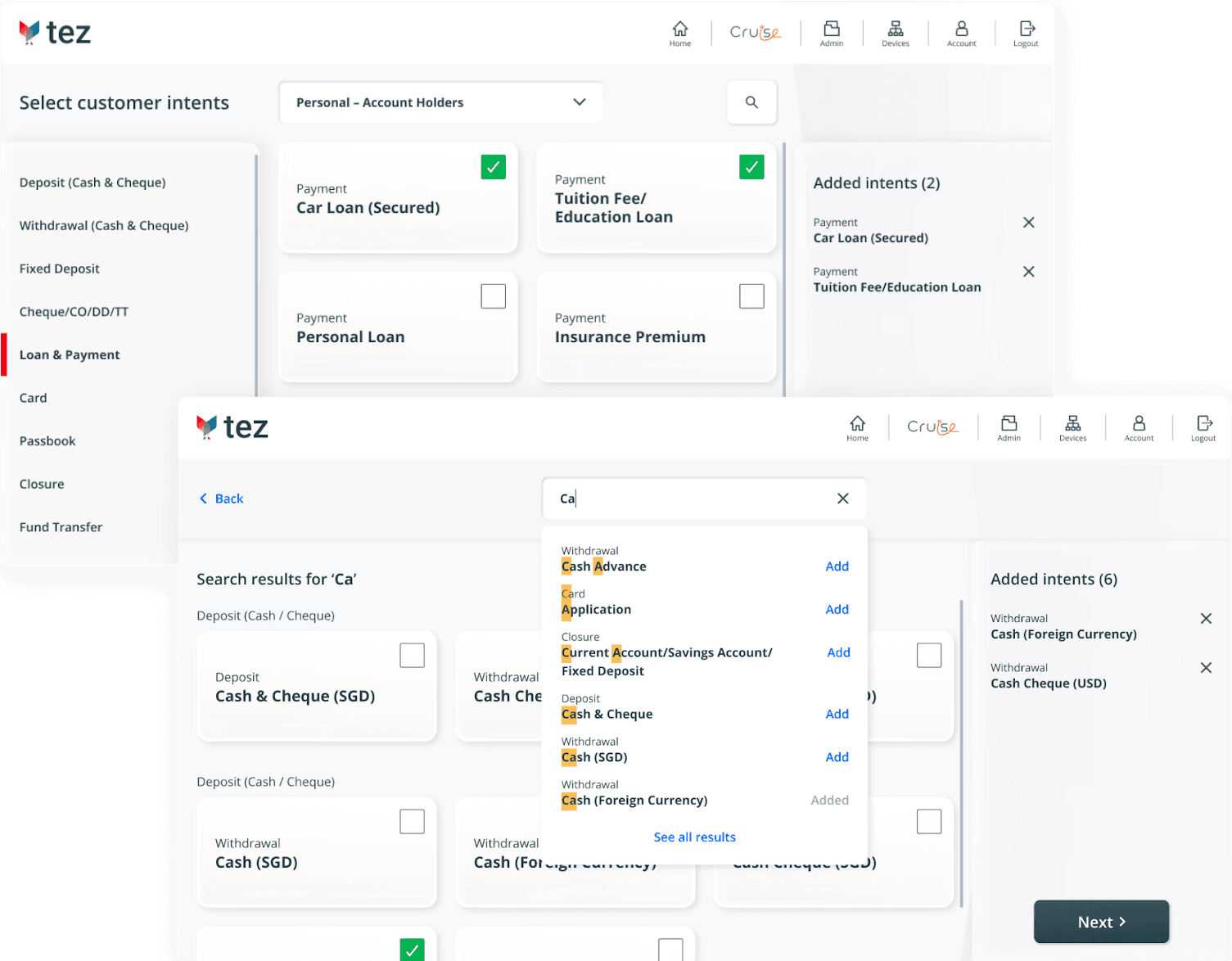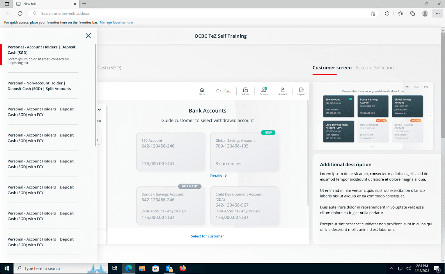 • High-fidelity prototypes were tested with tellers and customers—including elderly and less-abled users—to identify critical breakpoints, ensure intuitive flows, and reduce training complexity.