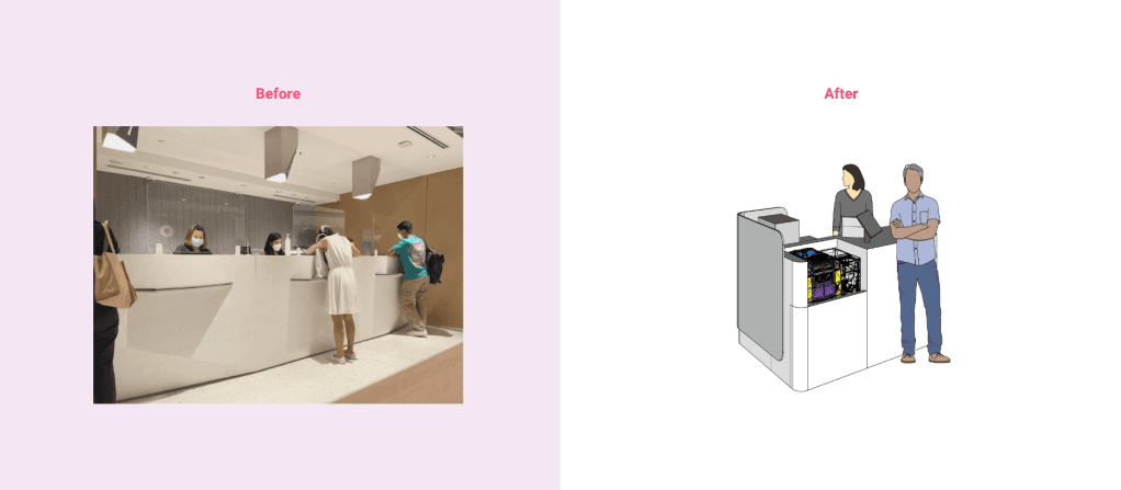 Enhancing transparency and trust: Building on previous findings that side-by-side engagement fosters transparency and trust, the new concept introduces a dedicated counter for each teller-customer interaction